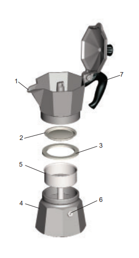 摩卡壺由食品級鋁製成,採用結實的隔熱PA66 塑料把手,配以Bialetti的專利安全閥。